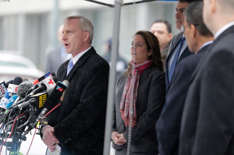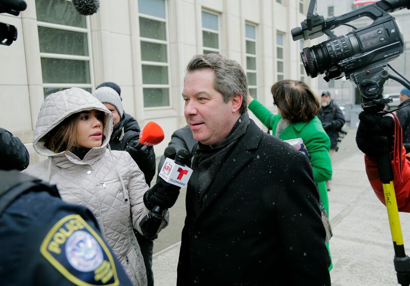 "It is a sentence from which there is no escape and no return," Donoghue told a news conference outside the courthouse, through snow and sleet.