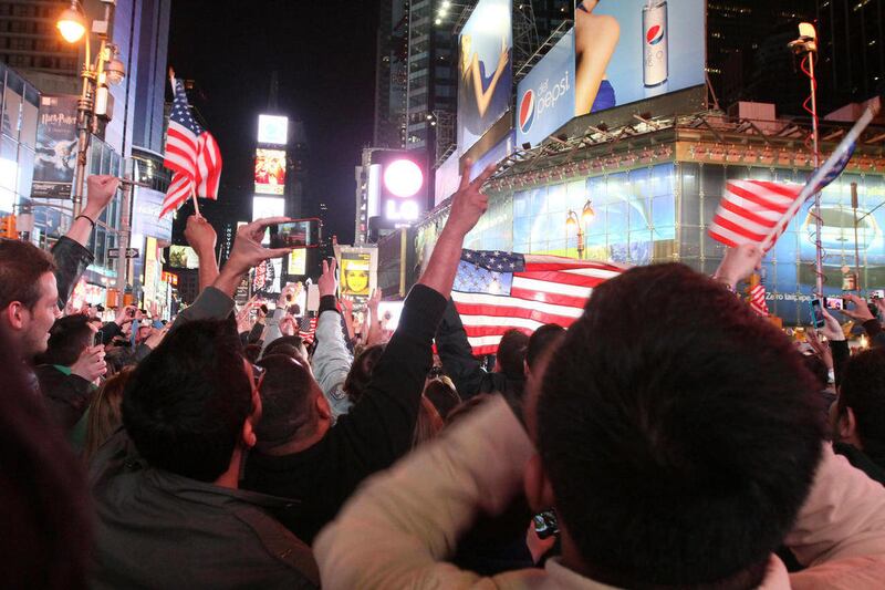 Spontaneous, celebratory rallies broke out in New York City at ground zero, where the World Trade Center towers fell on Sept. 11, 2001 and outside the White House where President Barack Obama announced bin Laden's slaying in a helicopter raid in Pakistan.