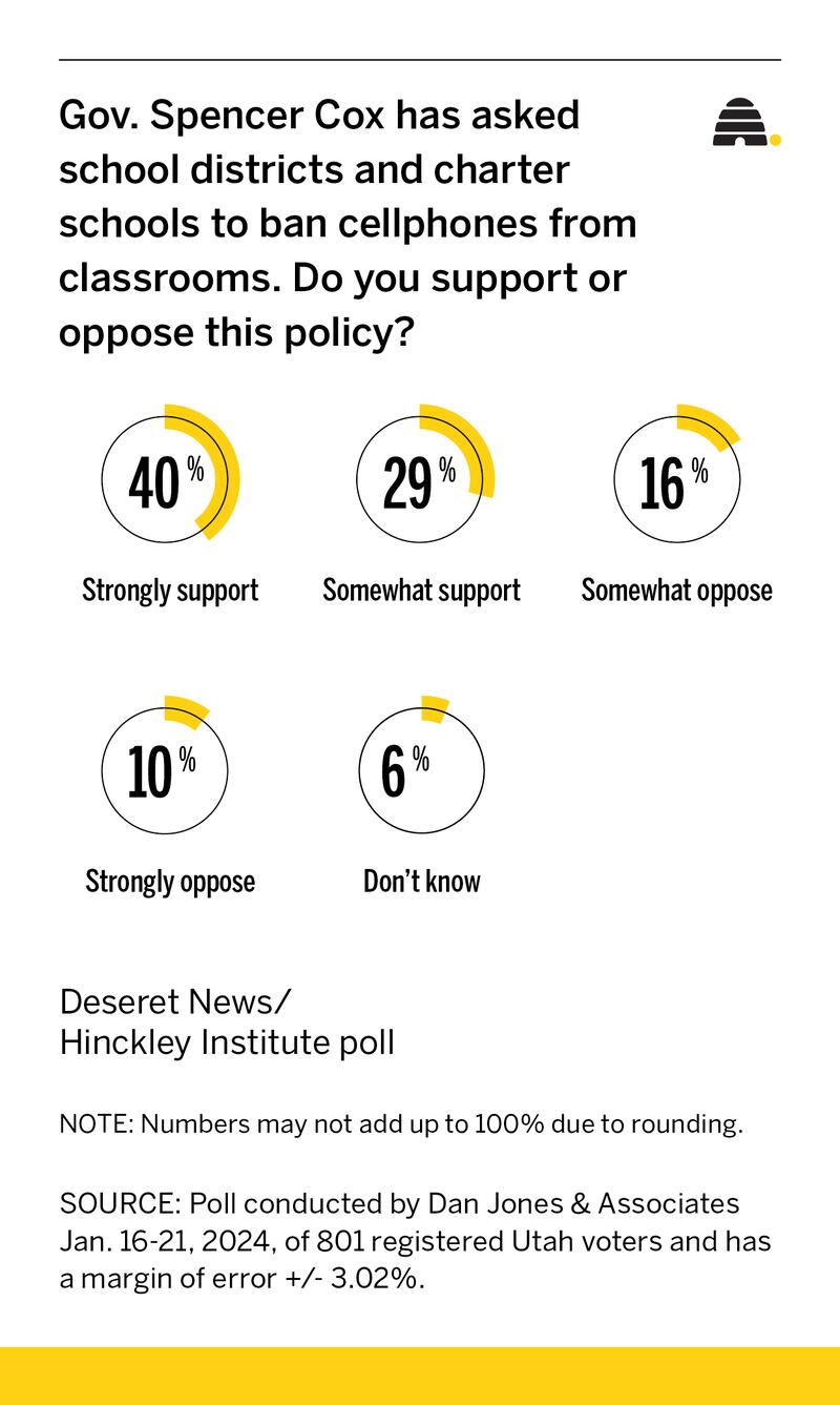 Most Utahns support limiting cellphone use during instructional time, according to a new Deseret News/Hinckley Institute of Politics poll.