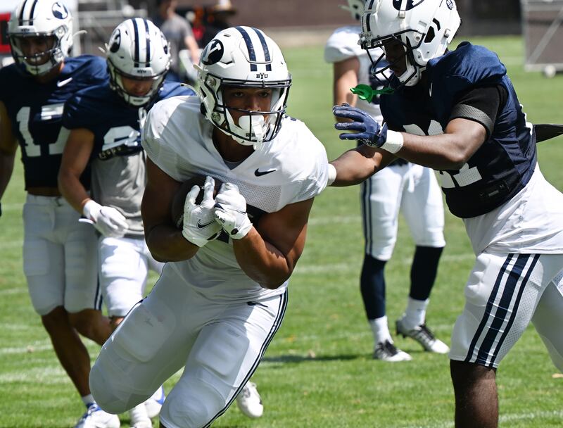 “LJ Martin is a standout in camp so far. He is one of the best players on this team. … He has already proven that he’s going to be player for us this season.” — BYU offensive coordinator Aaron Roderick
