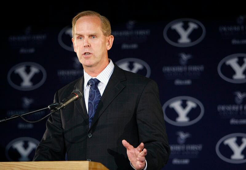 “You have heard me say this before: It’s the culmination of 40, 50 years of twists and turns, and hard work,” Holmoe said Monday. “Not just for BYU football and basketball, but all of BYU athletics. … It is the day we are finally, officially, in.”