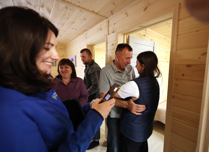 She told the builders they had their jobs back. She went to eligible Ukrainians living on destroyed streets, telling them, “You’re getting a house. You’re getting a house. You’re going to get a house in the next few weeks. All these people were crying.”