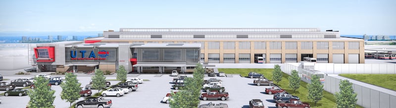 An artist rendering of the exterior of Utah Transit Authority’s new Depot District Clean Fuels Tech Center, which is currently under construction. | Utah Transit Authority