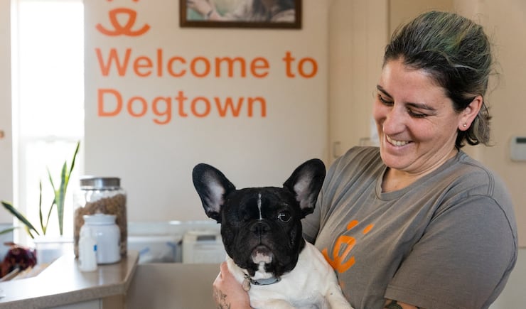 “We can house dogs long-term because there is no risk of euthanasia here,” says Melissa McCormic, senior manager of behavior at Dogtown. “We can keep dogs and do a bunch of behavior work with them and explore different things. We have the budget and we have the creativity.”