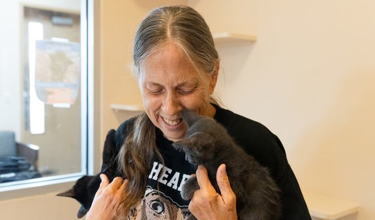 “What’s neat about some of our local volunteers is they develop relationships with these dogs, and they’ll do things like take them for car rides, take them into town for an outing, sometimes take them for sleepovers,” says Sathe. “Every dog here has their little family.”
