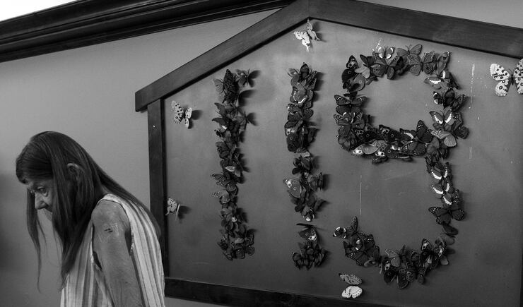 Across the parking lot to the east of The INN Between, there’s a rock garden memorial to the dead. Since the doors first opened in the old convent, 122 blue butterflies have signaled a final passage.