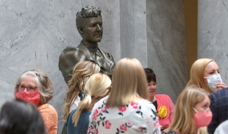SALT LAKE CITY — A statue of Martha Hughes Cannon, the country’s first female state senator, that’s set to join the mostly male statues on display in the National Statuary Hall in Washington, D.C., was unveiled Monday at its temporary home at the Utah Capitol.