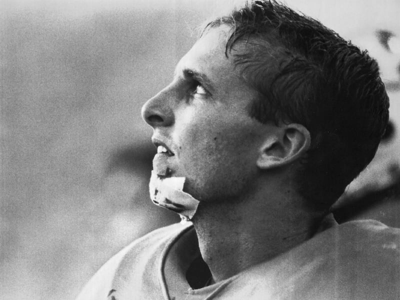 Detmer had just taken a short drop and stood in the pocket, knowing tight end Chris Smith would open up on his corner route. Miami’s defensive end came in unblocked as Detmer waited and just as he released the pass, the rusher hit Detmer under the chin with his helmet. He had a soft chin strap on that night, the last time he went without a hard one in his career. The impact split his chin and it bled freely, requiring eight stitches afterward.