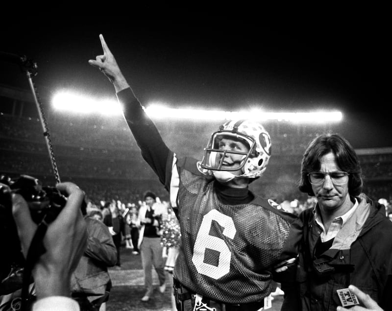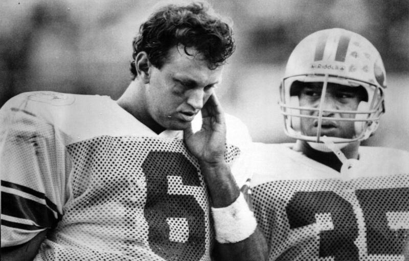 “I throw a pass to (Glen) Kozlowski to the left side and a guy rolls up on my leg,” Bosco recalled. “My foot gets caught up in the turf and he just keeps rolling.”