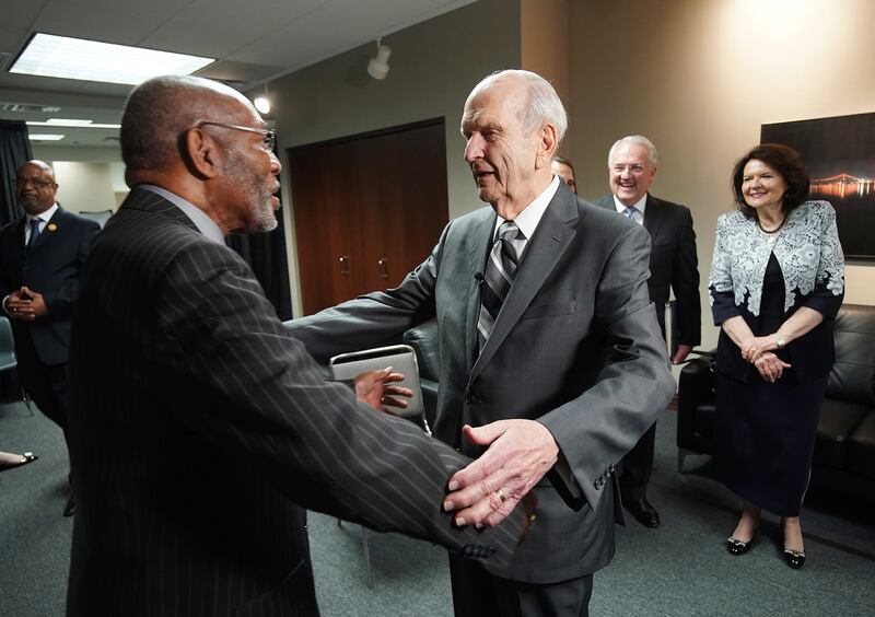 President Nelson met with numerous NAACP leaders on Sunday afternoon, including the association's president, Derrick Johnson.