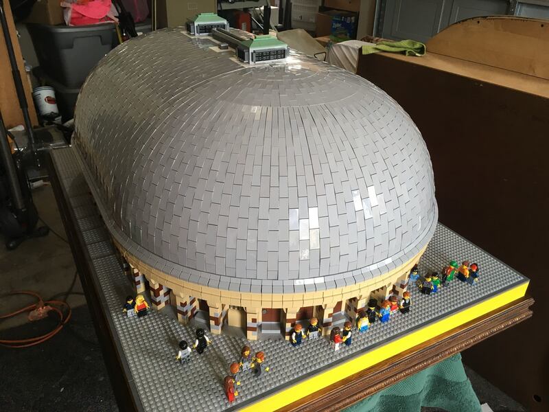“How do you put the roof on such a complex shape?” he said. “It looks super simple, but it’s not round; it’s parabolic. And it’s 9 feet thick, and they built it without nails. So I was trying to figure out: how do I do the trusses out of Lego, how do I do the shingles so that they look like the real shingles? And I was able to pull the whole thing off. … It was trial and error and waking up in the middle of the night with a new idea of how to do it.”