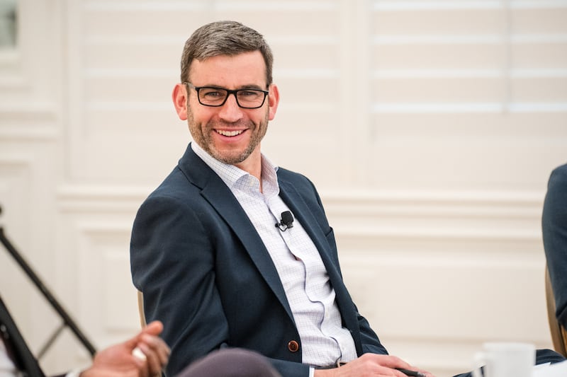 Josh Good, wearing a plaid blazer, welcomed the attendees. In six years of hosting Faith Angle retreats for journalists, Good has become a master convener and a professional curator of big conversations, and a passionate advocate of “thick pluralism,” the idea that Americans of various ideological viewpoints should actively work together toward mutual political goals.
