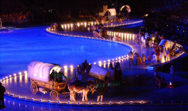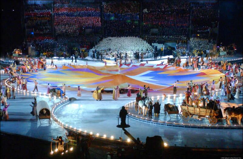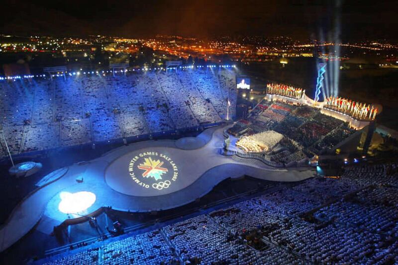 opening ceremonies of the 2002 Winter Games, celebrated a few hours later with the relighting of the Olympic Cauldron at the University of Utah.