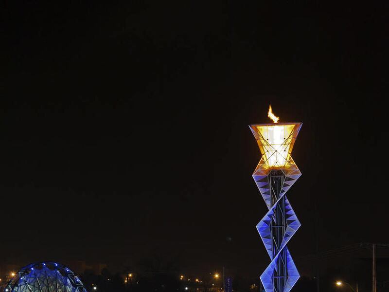 Close to 1,000 gathered at Rice-Eccles Stadium had their eyes and cameras trained on the cauldron while two torches were held by two young winter sports athletes at the base of the tower. Fireworks went off, music played and three minutes passed with no flame.