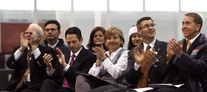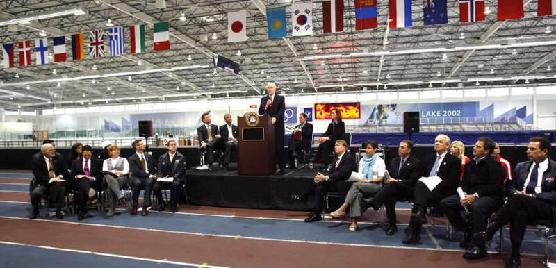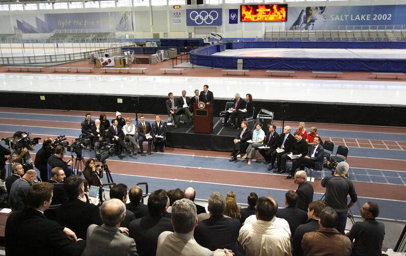 Those include whether the private sector is willing to step up with the money needed to upgrade the state's Olympic facilities, including the speed skating oval in Kearns where Wednesday's announcement was held.