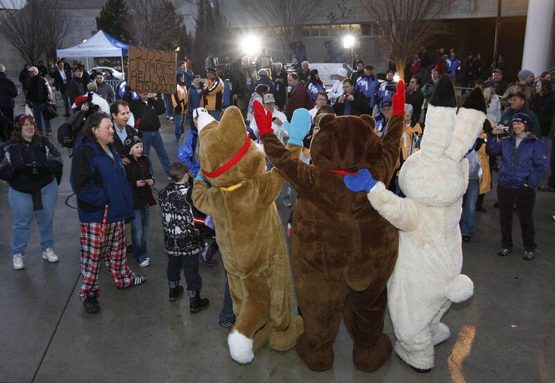 Pete Liacopouloss, a Salt Lake City man carrying an Olympic flag and sign which read, in part, "2022 Olympics? Let's do it!" agreed.