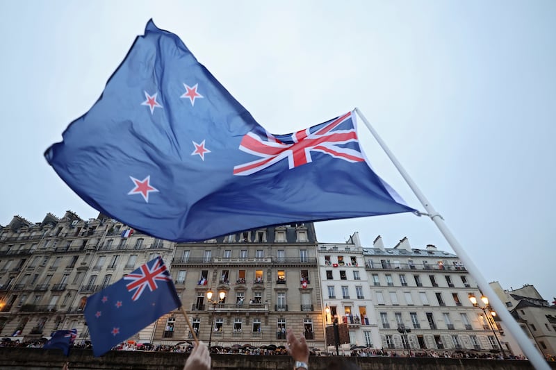 The New Zealand flag is seen from the team boat during the opening ceremonies of the 2024 Summer Olympics, Friday, July 26, 2024 in Paris, France. | Hannah Peters