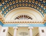 Inside, up a row of marble stairs carpeted in red tones, the main floor feels like the wing of a museum, with a grand hall 82 feet long, crowned by a soaring dome ceiling and a chandelier designed by purveyors to the imperial court. There are busts of Lincoln and Franklin, black and white photos of Kissinger and JFK, snapshots of Reagan and Gorbachev. At evening receptions I attended, mingling among European and South American diplomats, I felt like I had been transported into a James Bond movie, where the waiters serving deviled eggs on silver platters might just be KGB spies.