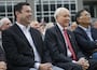 Rep. Jason Chaffetz, R-Utah, left, and Sen. Orrin Hatch, R-Utah, center, listen to speakers during the ribbon-cutting ceremony for Overstock.com's new Peace Coliseum office building in Midvale on Friday, Oct. 14, 2016. The project cost just under $100 million and occupies over 18 acres of land. | Nick Wagner, Deseret News