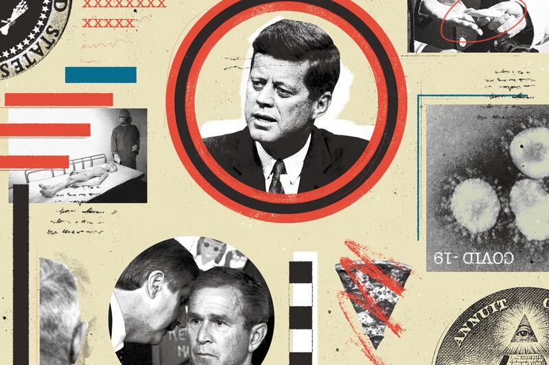 Bad actors can use that to their advantage, and not just spies or heads of state. “We’ve got to not forget the capitalism part of conspiracy thinking,” says University of Utah historian Robert Goldberg. Operating outside of traditional institutions and expertise, the “conspiracy entrepreneur” may or may not believe his theories, but he profits from them, through his writings or selling merchandise like T-shirts emblazoned with silly slogans like “Bush did 9/11.” But what he really sells is reassurance in uncertain times: This did happen for a reason. Even if that reason is clearly delusional.