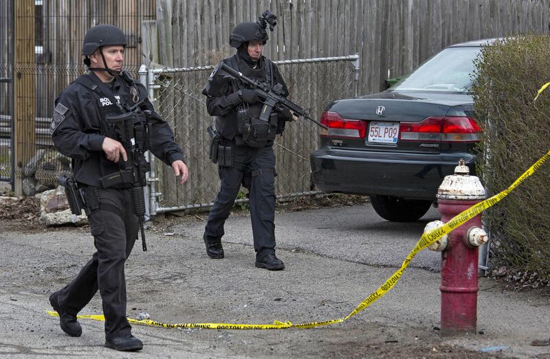 In addition to photos of the suspects released by the FBI and Boston law enforcement agencies, citizens also are uploading photos of the ongoing search for for the suspect. Some of the most striking photographs show SWAT teams in backyards going from house to house as part of their thorough search.