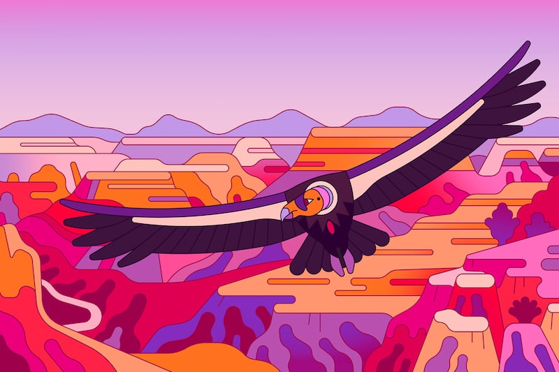 To our right, the canyons turned purple with the sunset. We watched as the birds soared around the cliffs until each found its favorite spot to snuggle in for the night. To the average person, watching floating specks through spotting scopes for hours each evening might seem like a slog. But for as long as lead poisoning remains a threat to their survival, the Condorks’ focus stays fixed. In a few years, the inexperienced fliers will reach mating age and couple with a partner. Hopefully, they breed a wild chick, one that isn’t born in captivity for a change. And soon, the four new birds will join them, wings spread wide above the canyons.