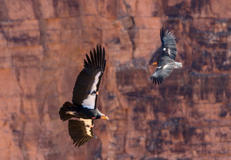 Today, the raptors reign over an impressively wide terrain, from coastal California to northern Mexico, and from the desert cliffs of Arizona’s backcountry to southern Utah. But thousands of years ago, the condor’s kingdom was much larger. Fossil records indicate that its historic range once extended as far southeast as Florida and as far northwest as British Columbia, at a time when megafauna like sabertooth tigers, mastodons and American cheetahs roamed the land we now call North America.