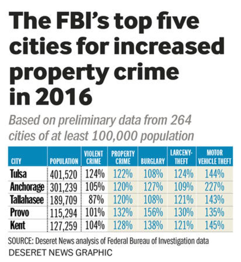 The FBI's top five cities for increased property crime in 2016 | Mary Archbold, Deseret News
