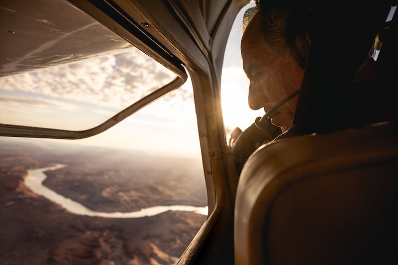 Bruce Gordon was at the controls. The organization he founded, EcoFlight, uses small aircraft to educate and advocate for environmental issues, often ferrying journalists and policymakers so they can see the big picture. He’s been flying for 30 years and has made hundreds of flights over the Colorado River.
