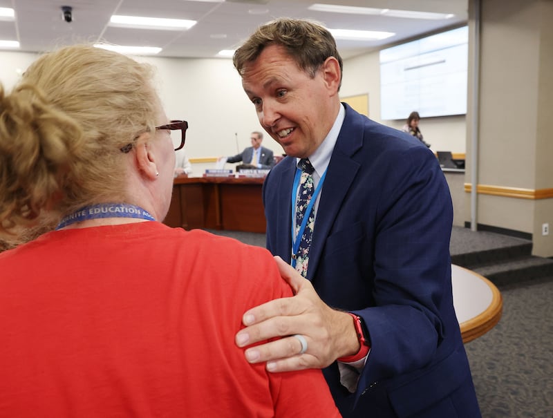 "Dr. Nye, thank you. Thank you for infusing excellence, kindness and high expectations into all levels of our district and board, thank you for hiring such an excellent person to do the work," said Michell Jones, president of the Granite Education Association.