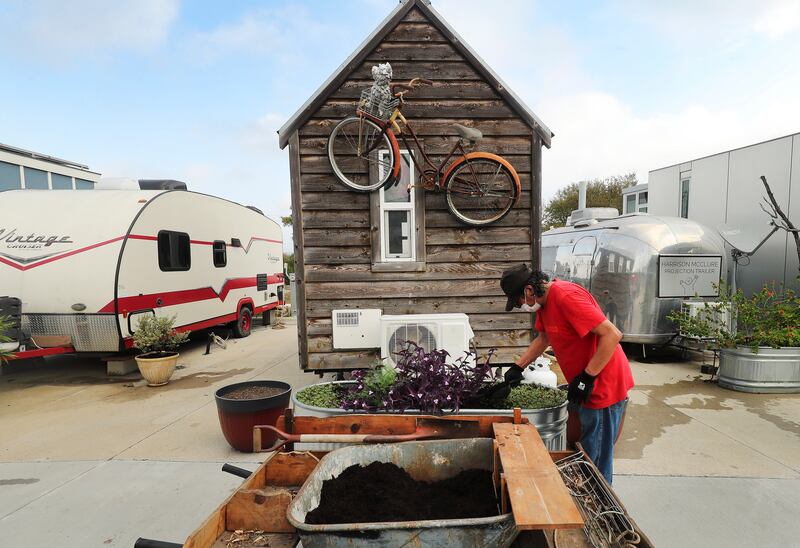 Mayors, including Mendenhall, community leaders and homelessness solution-seekers from across the U.S. have turned their attention to the quirky tiny home village — with so far 27 acres (and more coming) full of homes — from RVs, tent-like structures called “canvas-sided cottages,” to tiny homes (some of which are 3D-printed), and micro homes, which don’t have plumbing, but are situated near community kitchens, laundry, shower and restroom facilities.