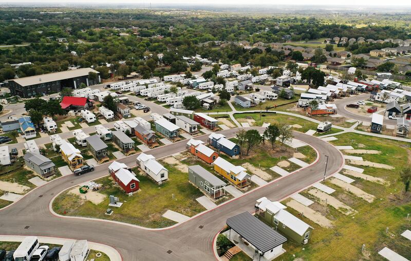 The other is a master planned tiny home village, built on the outskirts of southeast Austin. Tiny homes of all shapes and sizes line curved, paved roads and sidewalks, adorned with manicured lawns, gardens and patio areas.